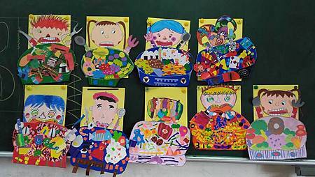 本次課程設計結合幾何剪貼、半立體創作、蠟筆手繪主角。讓孩子學習各種技法的應用完成作品。也看見孩子擁有不同的創意與想法。